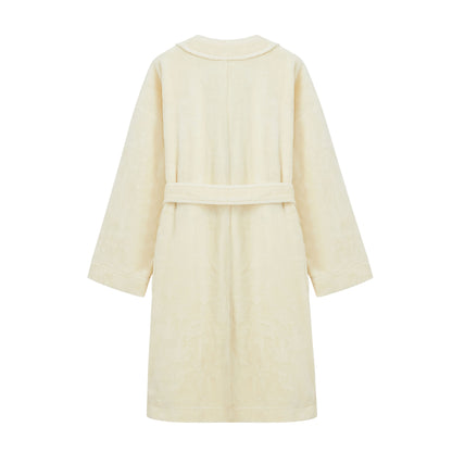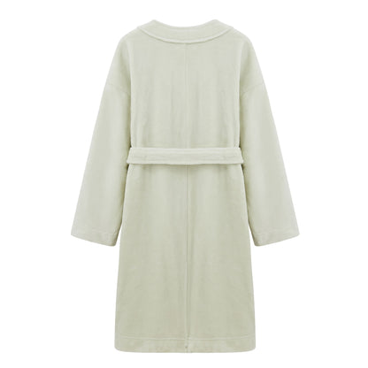 Classic collared robe in new colors, cut for a comfortably loose fit. Size M is 42.5" in length.