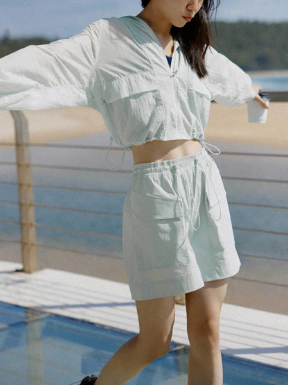 Water-repellant and sun-resistant, this hooded Breeze Light Sun Block Jacket is designed to keep you cool, dry, and unburned in any weather — designed in a chic style, this versatile top is perfect for light sports or casual daily wear.