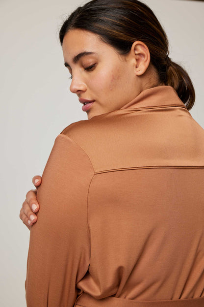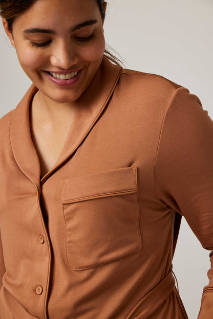 Made from a luxuriously soft TENCEL™ blend, the Classic Cozy Belted Pajama Shirt is softer-than-soft, drapes beautifully, and is exactly the breathable and extra cozy loungewear you’ll want to live in this fall and winter.