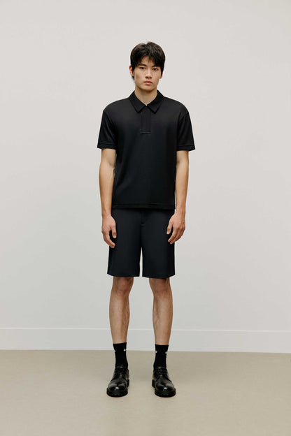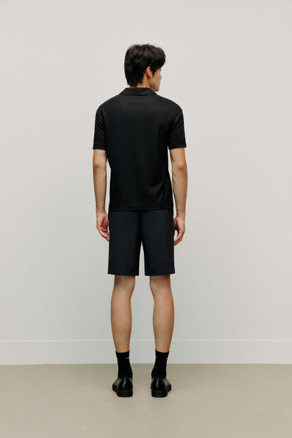 • Classic short-sleeve polo shirt with subtle satin details in the hemlines.
