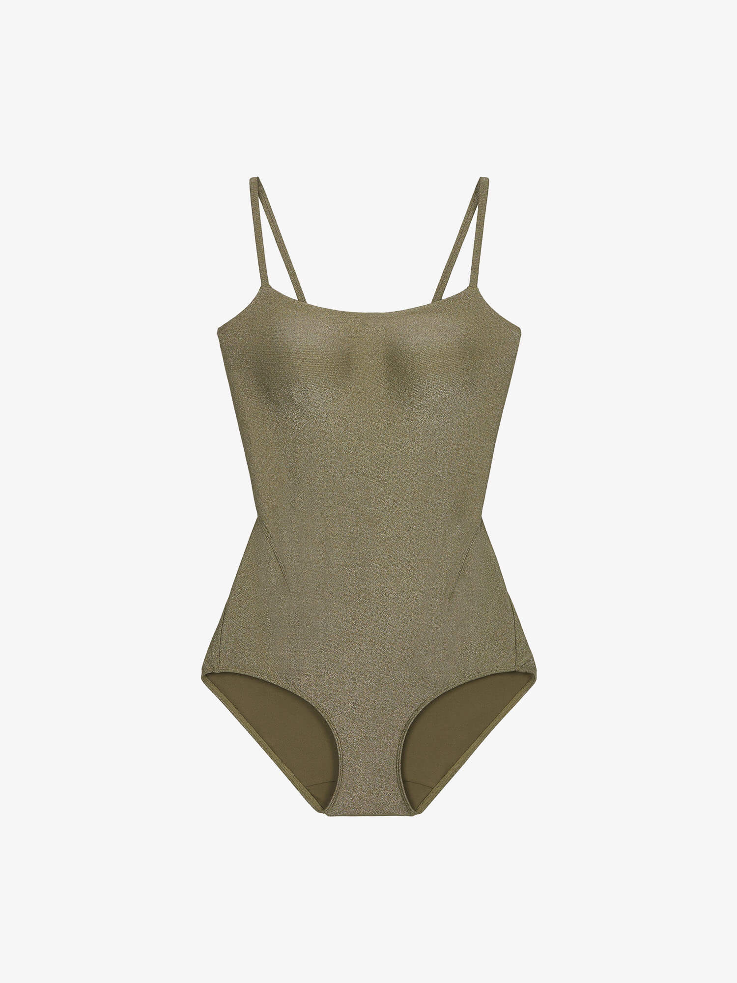 Crafted from soft nylon interwoven with ultra-fine gold silk, our Strappy One-Piece Swimsuit offers a subtle shimmer and luxurious feel. With a seamless silhouette, flattering waist detail, and adjustable strappy back, it brings effortless elegance to any summer escape.